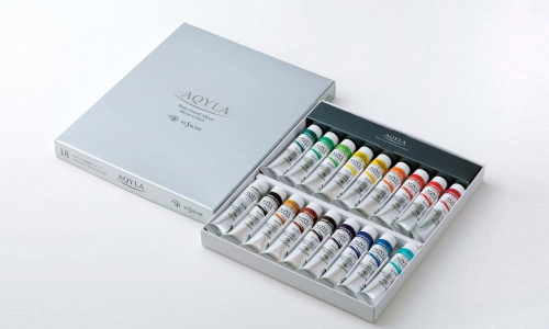 絵具はそもそも顔料だけでは画面に定着しないため、糊が必要になります。油絵具なら乾性油、アクリル絵具ならアクリル樹脂、日本画絵具なら膠となりますが、テンペラ絵具はなんと卵で顔料を練った絵具です。そのためテンペラ絵具は艶がありません。このテンペラ絵具を表現するために作られたアキーラ。なのでアキーラにも艶はありません。