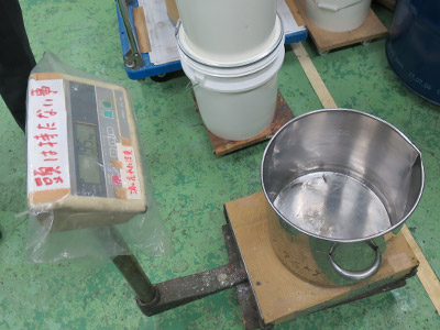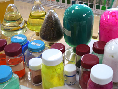 出来上がった絵具が商品としてきちんと出せる品質に仕上がっているかどうかジャッジするために、色を機械に通して数値化し、基準の色との色調差を調べます。この確認作業は複数回おこない品質を管理しています。