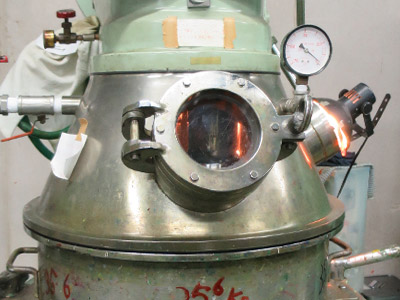 こちらのミキサーでは機械内部の気圧を下げ、真空状態にすることができます。絵具の中の空気を抜き、脱泡するのです。−1気圧で真空状態になり内部の空気を外に抜いていきます。